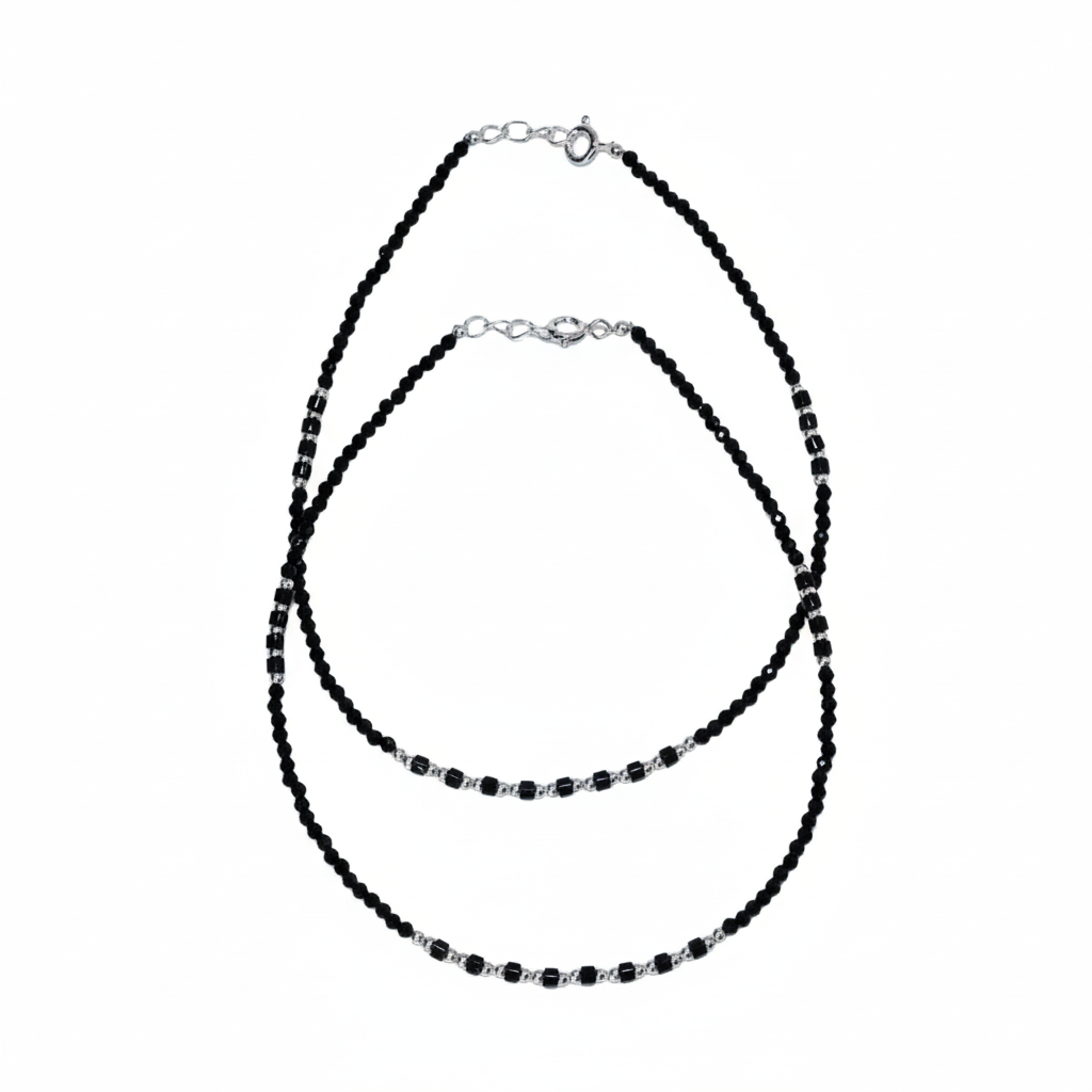 Each anklet is meticulously crafted with a continuous line of delicate black beads, interspersed with tiny, bright sterling silver spacers for maximum flexibility and sparkle. The black beads are the signature element, symbolizing the absorption of negative forces. The entire piece, including the durable clasp and extender chain, is made from certified 925 sterling silver, ensuring it is hypoallergenic, gentle on the skin, and built to last.