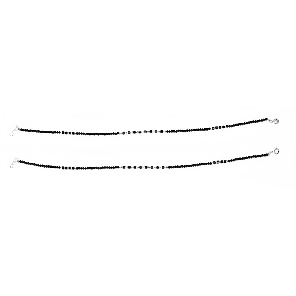 Silver Modern and classic Black beads Design Anklets For her