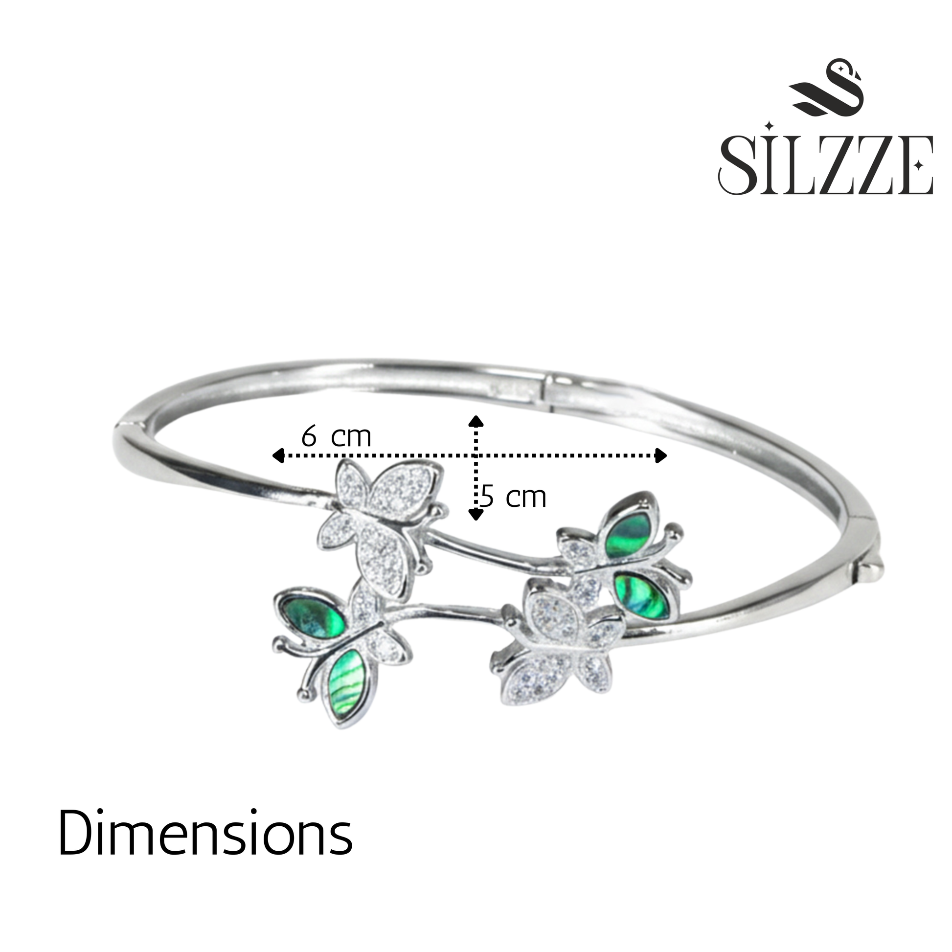 Capture the delicate beauty of nature with this enchanting butterfly-themed bangle bracelet. This elegant piece features a graceful, open-front design with four charming butterflies clustered together. Set in a smooth, high-polish silver-tone metal, this bracelet symbolizes transformation and joy, making it a beautiful addition to any collection.