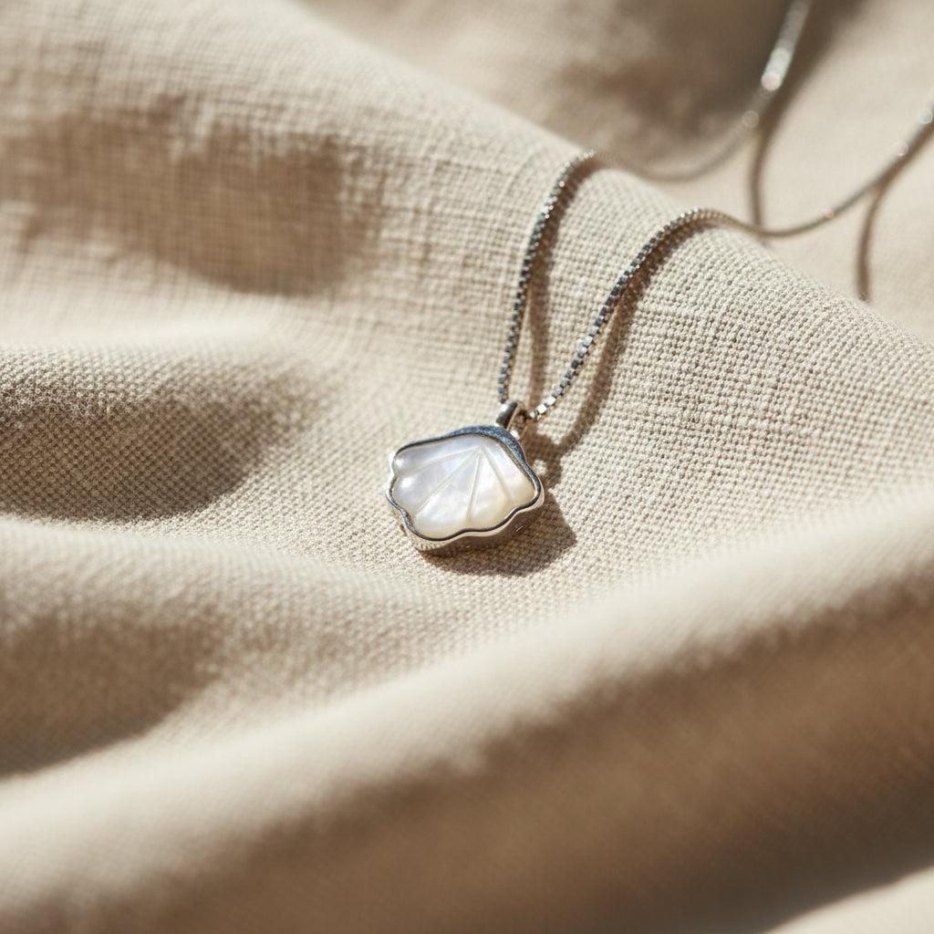 Silver Mother Of Pearl Shell Pendant necklace for her