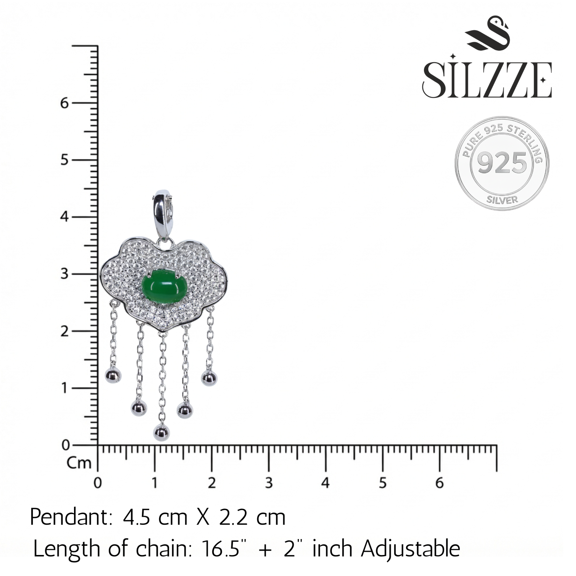 Add a touch of vibrant color and whimsical movement to your look with this captivating charm pendant. This necklace features a smooth, domed Green stone centrally set within a unique, organically shaped pendant. This stylish piece is beautifully crafted in genuine 925 Sterling Silver and hangs from a delicate omega chain. It’s a wonderful piece of statement jewelry that symbolizes good luck and fortune.