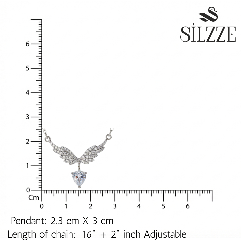 Guardian angel wings heart chain pendant for the fierce, bold and confident showing independentness, made with 925 sterling silver with heart shaped zirconia and wings around it giving it a marvelous look.