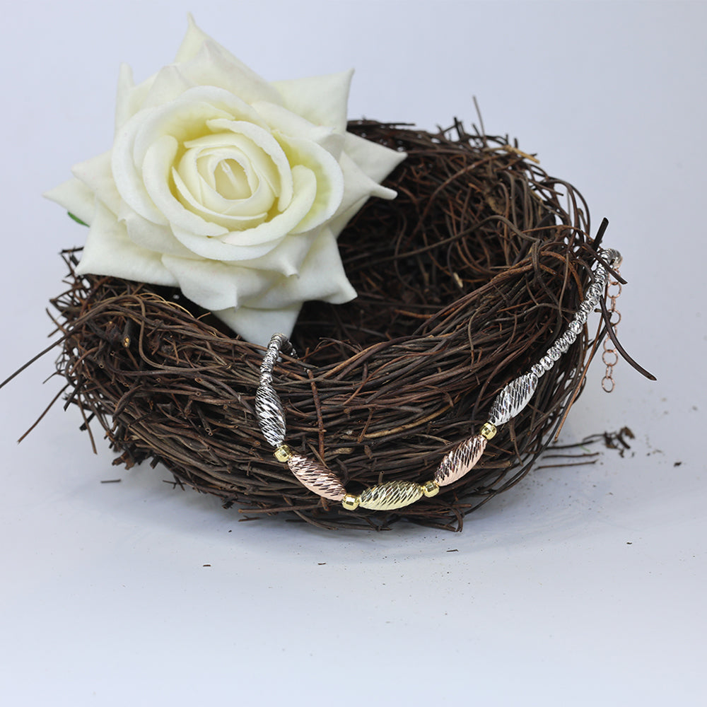 The smaller beads offer non-stop shine, while the three larger, A diamond-cut rice beads add a beautiful pop of color and texture. It's light, comfortable, and features an adjustable chain so you can find the perfect spot for layering with a watch or bangles.
