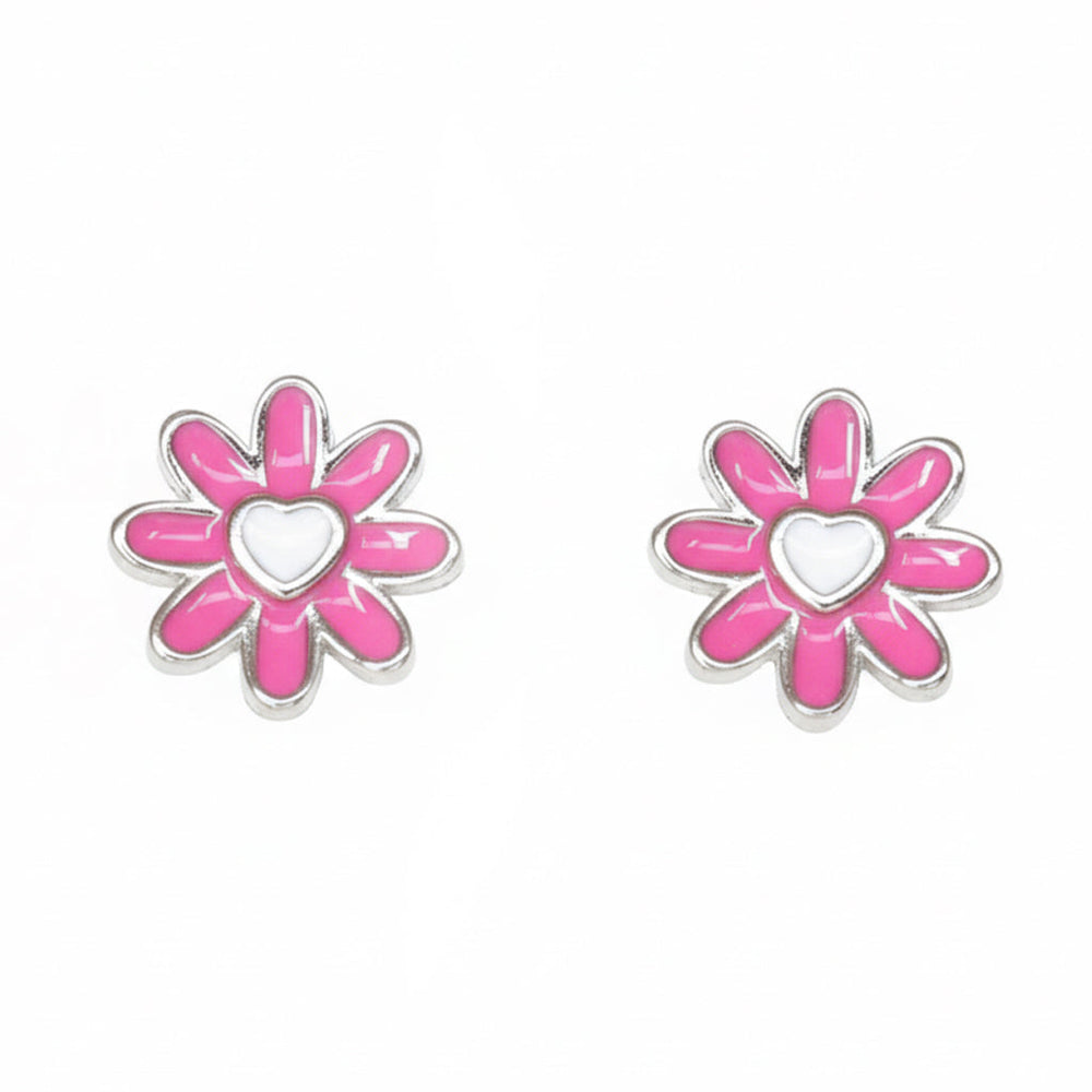 Love in full bloom! These sweet Hot Pink enamel florets feature an adorable white heart center. They are a fun, colorful, and charming way to wear a little affection every day. Spread the love!