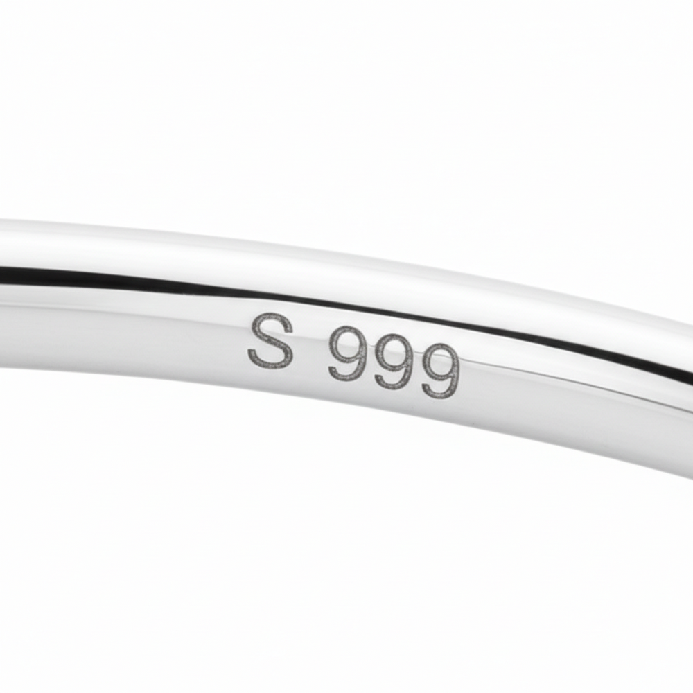 Featuring a pair of 999 Purity Fine Silver Baby Kada (Bangles) a classic, highly polished finish and delicate 'Baby' engraving, these kadas are designed with an adjustable open-end to ensure a perfect fit as the child grows. The highly reflective polish adds a touch of pure elegance, making them ideal for celebratory occasions, gifting, or as an heirloom piece for daily blessing and beauty.
