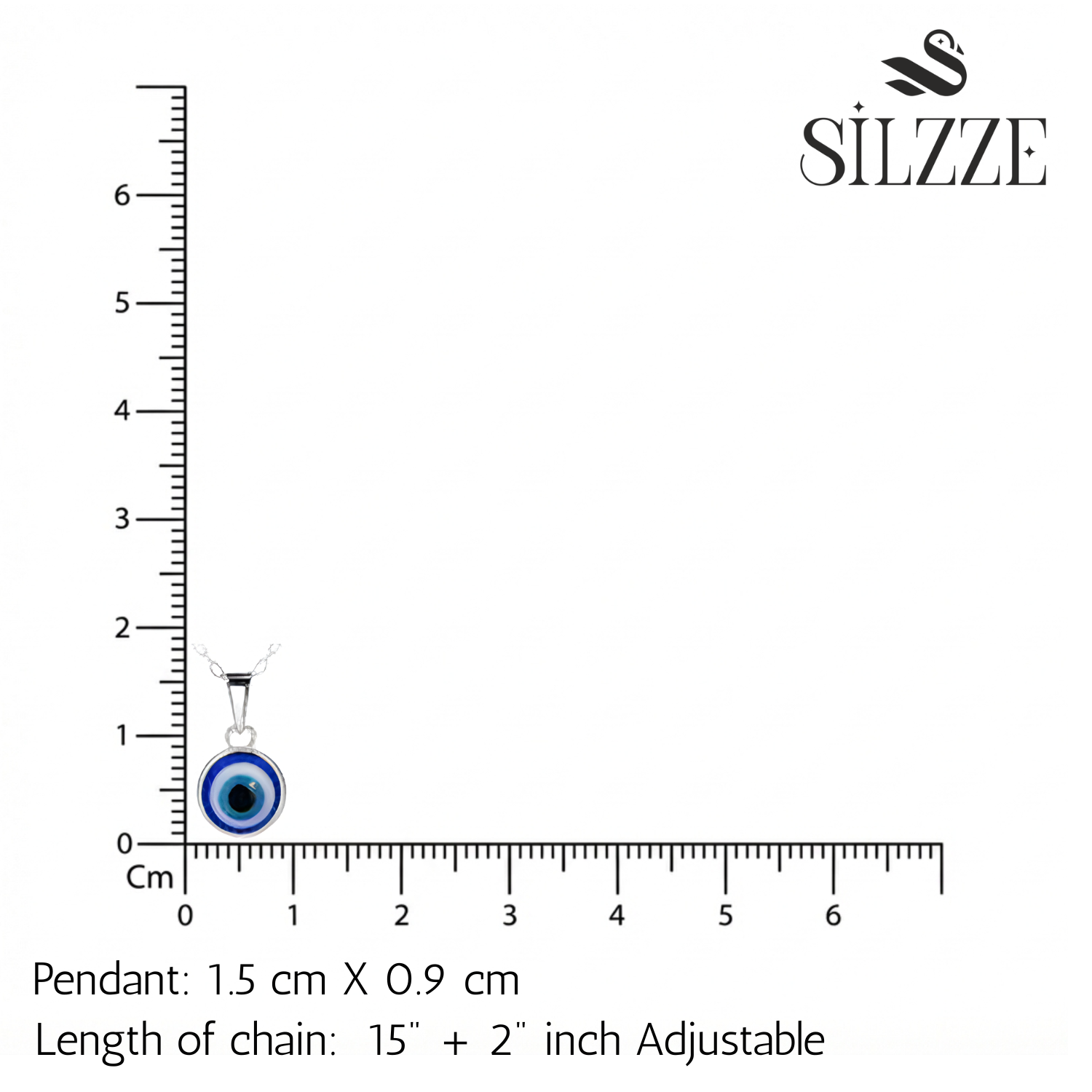 Protective Evil Eye necklace with a delicate Crescent Moon charm on a sterling silver chain
