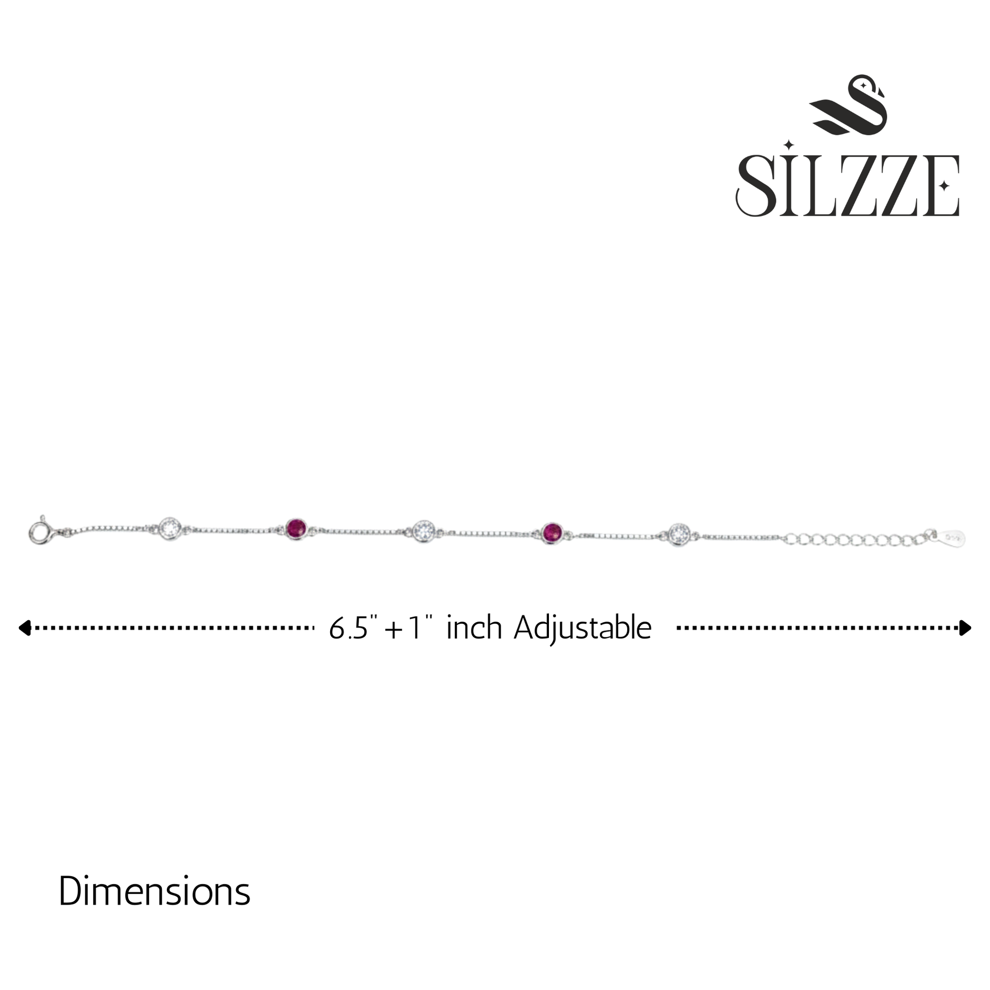 Discover our luxurious 925 Sterling Silver Bracelet, featuring a refined box chain linked by five bright, bezel-set cubic zirconia stations. The design alternates between captivating ruby-red and dazzling clear white stones.The cool, crisp shine of the sterling silver provides a stunning contrast to the deep, passionate red gems, ensuring an eye-catching sparkle on the wrist. This elegant and adjustable piece adds a perfect flash of sophisticated color, making it a beautiful, versatile accessory for everyday wear or a romantic evening look.