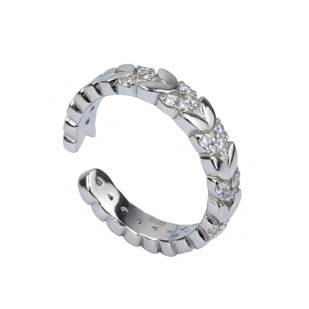 Stop stressing about ring sizes! This beautifully crafted band is designed for effortless sizing, thanks to its gentle, adjustable open design The design is pure romance: a continuous braid of alternating shimmering cubic zirconia and elegant heart motifs.