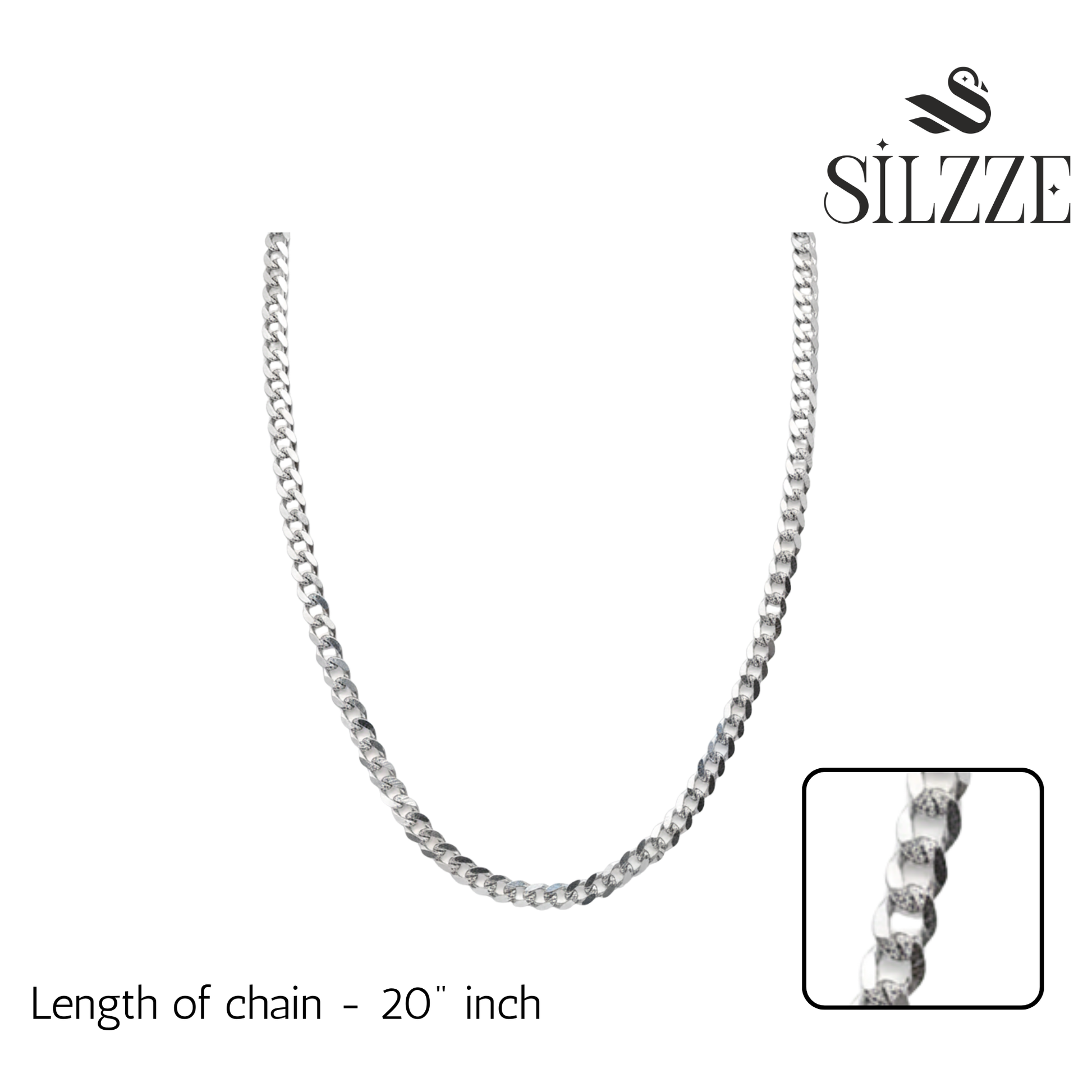 The essential silver-tone Curb Chain necklace. Featuring tightly interlocking, flattened oval links, this chain is known for its incredible strength, masculine profile, and high-shine finish. Perfect for making a statement. Made from Sterling 925 Silver.