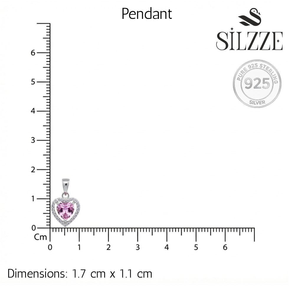 This enchanting 925 Sterling Silver set features a perfectly cut Pink Cubic Zirconia centerpiece shaped like a heart, symbolizing everlasting affection. The vibrant center stone is Surrounded by a dazzling halo of white CZ stones. This feminine set provides a delicate sparkle and a charming, romantic look. The brilliant pink colour offers a youthful and flattering touch, making it an ideal gift and a perfect accessory for daily wear or date nights or for someone special.