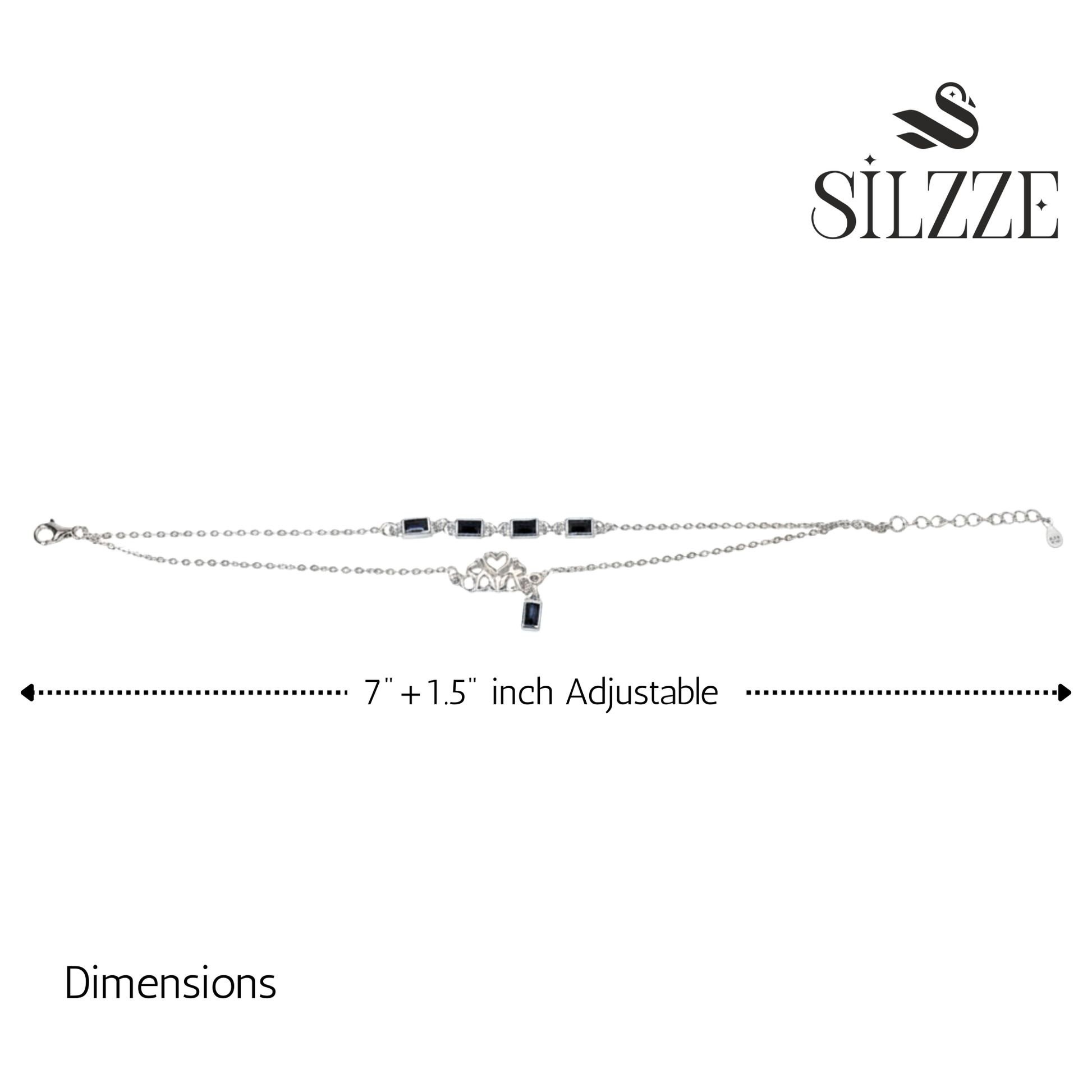 This contemporary statement piece is expertly crafted from luminous 925 Sterling Silver, featuring a trendy, ready-to-wear double-chain design. The bracelet is adorned with captivating rectangular (baguette) black Cubic Zirconia stones, creating a sophisticated monochrome look. The striking black stones against the bright silver create a powerful visual contrast, perfect for giving the customer a chic, edgy look for parties or evening events.