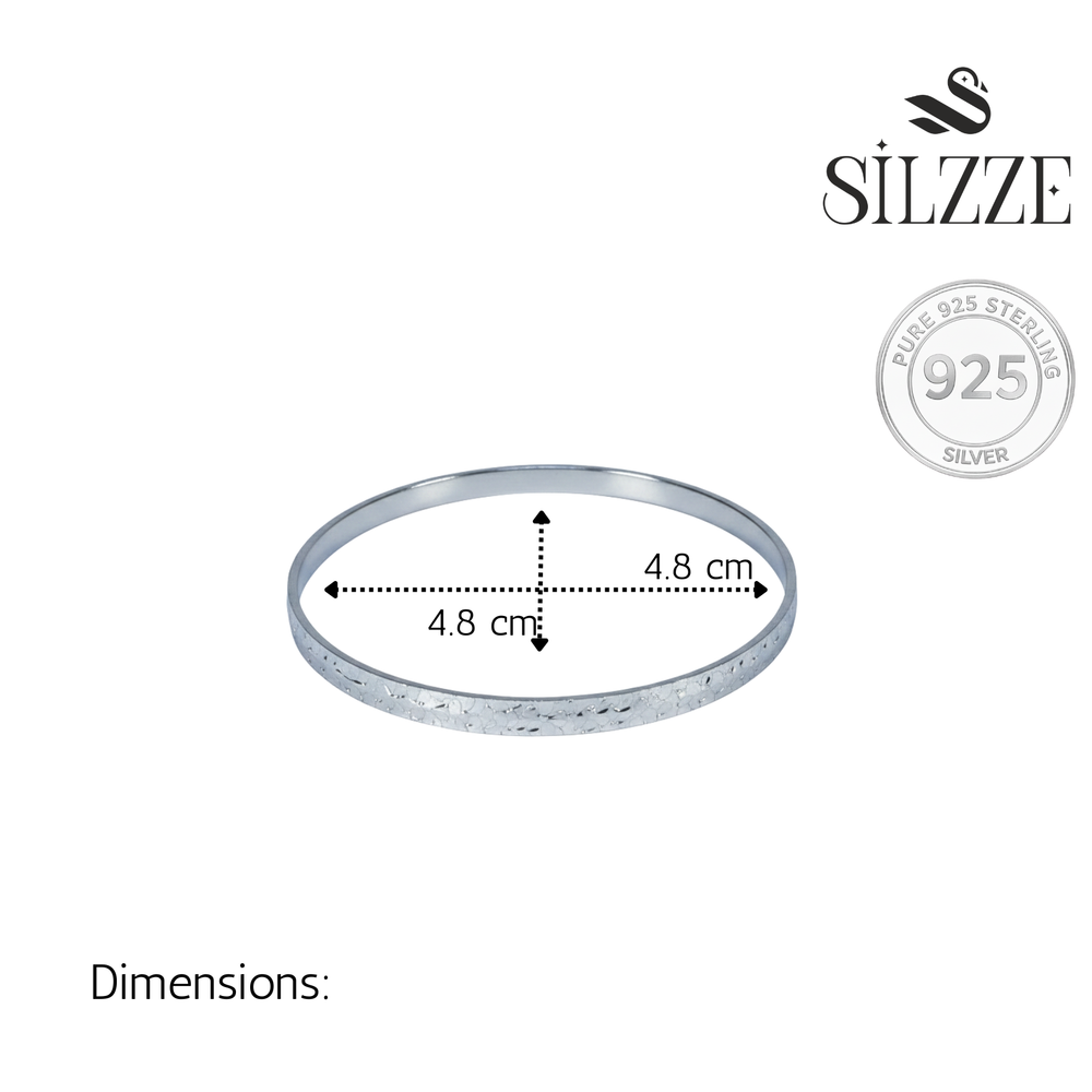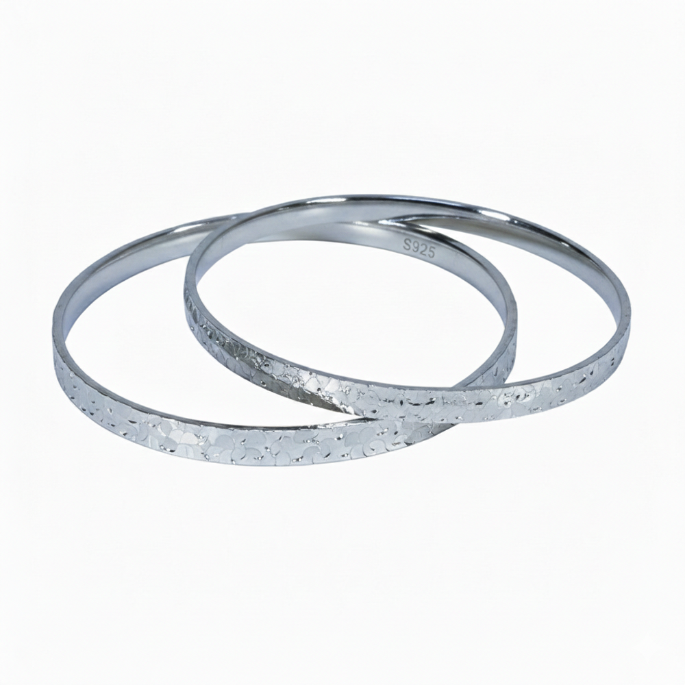 This exquisite baby kada set is meticulously crafted from 925 Sterling Silver, featuring an appealing, light-reflecting hammered texture for a unique finish. The classic hammered pattern offers an effortlessly traditional yet trendy look, perfect for daily wear or festive occasions like baby showers and birthdays. It lends a subtle, elegant shimmer to the child's wrist, making it a precious keepsake piece.