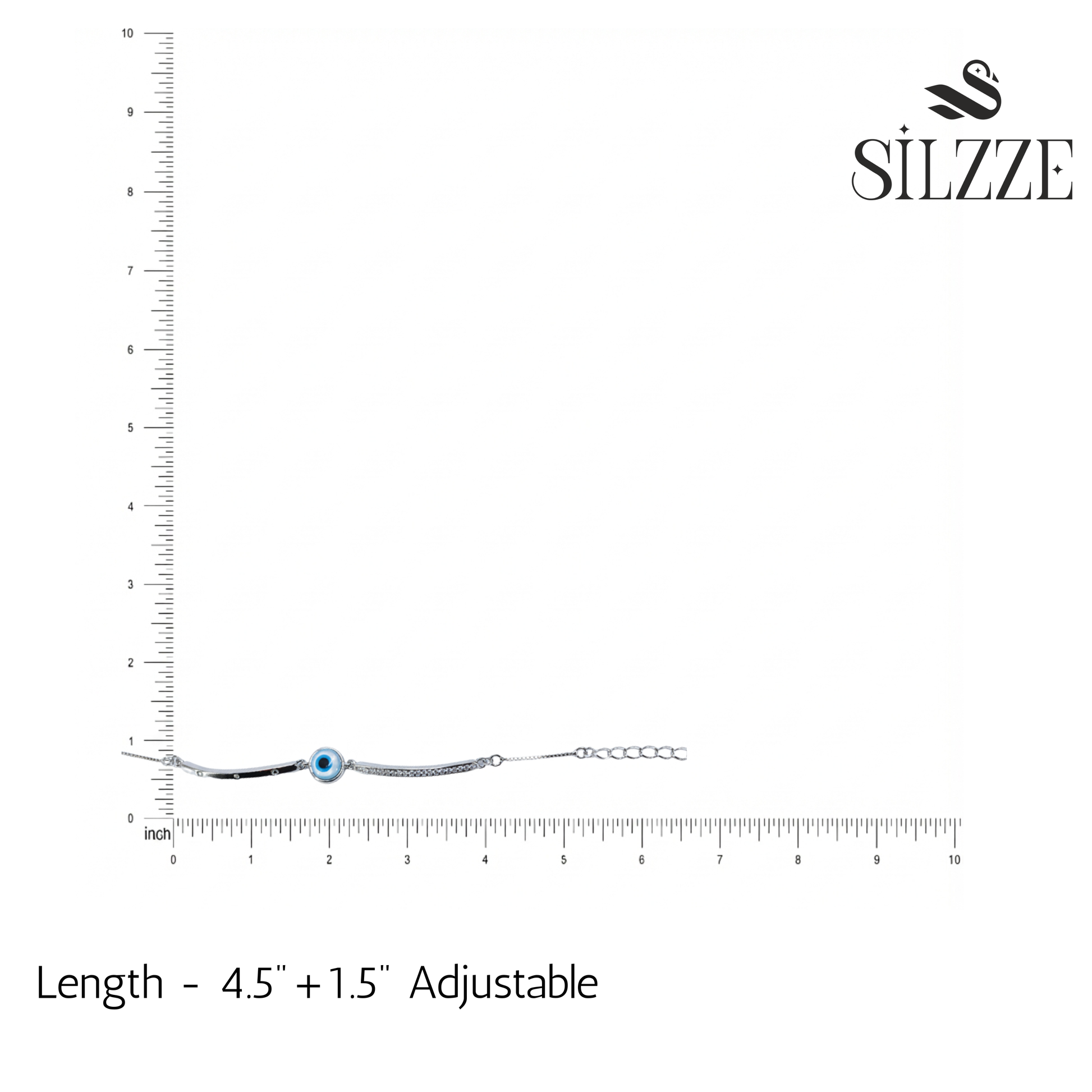 This delicate bracelet is designed for children aged 10-12 years and features the iconic Evil Eye charm for protection. This elegant Kids' Evil Eye bracelet combines meaningful protection with timeless style. Crafted in 925 Sterling Silver, the bracelet features a slender, curved centerpiece accented with sparkling cubic zirconia stones. At its heart lies a beautiful blue and white Evil Eye bead, believed to ward off negative energy. The adjustable chain ensures a perfect and comfortable fit for young wrists. This bracelet makes a thoughtful and stylish gift.