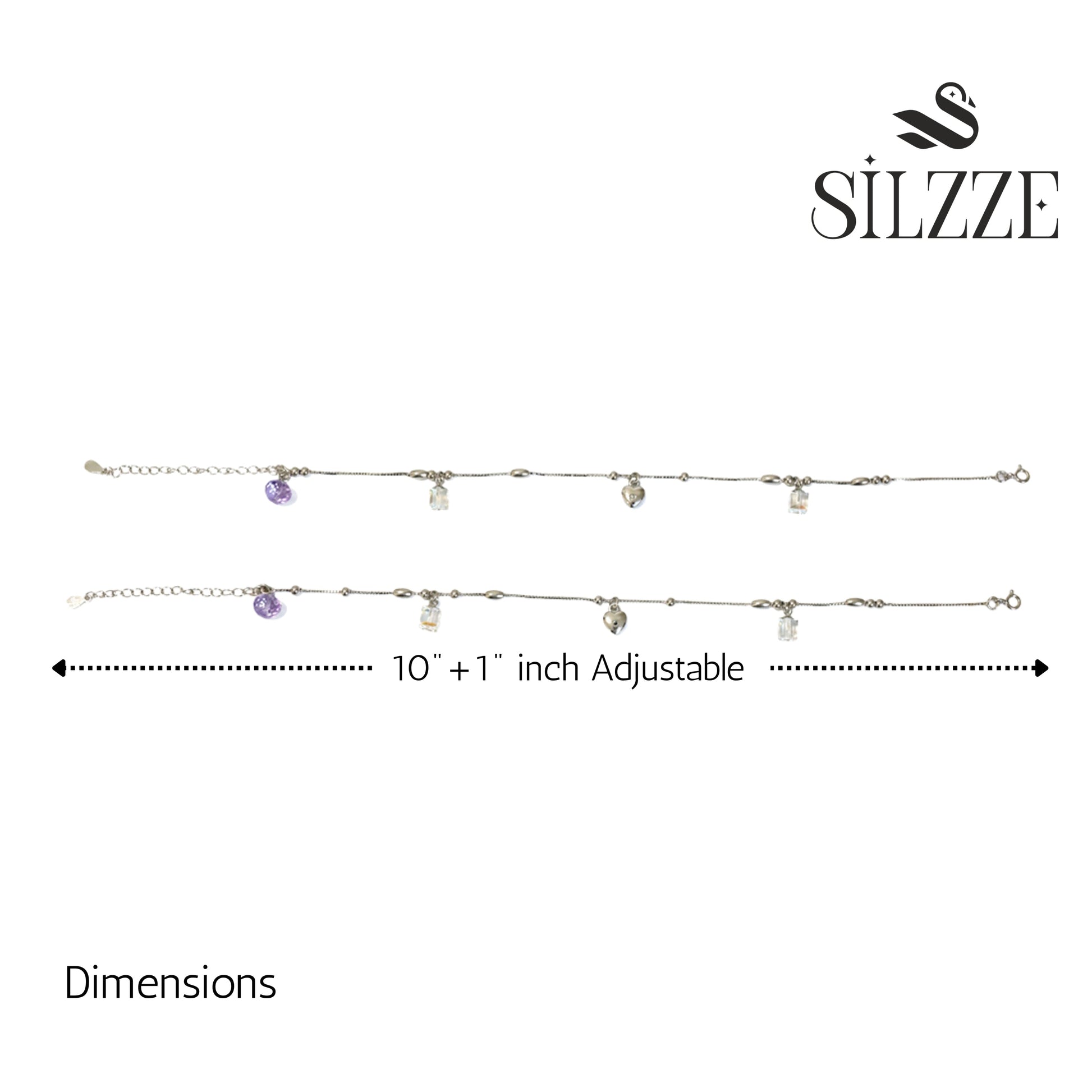 This dual-strand set of 925 Sterling Silver Anklets features a charming mix of sleek beads, delicate chains, and sparkling charms, including a lilac gemstone, clear cubic crystals, and a dainty pave heart. The mix of the gentle lilac color and sparkling clear crystals offers a unique, personalized aesthetic that perfectly complements spring and summer wardrobes.This set eliminates the guesswork of layering, giving the wearer an instantly stylish, elevated, and feminine accessory for an evening out.