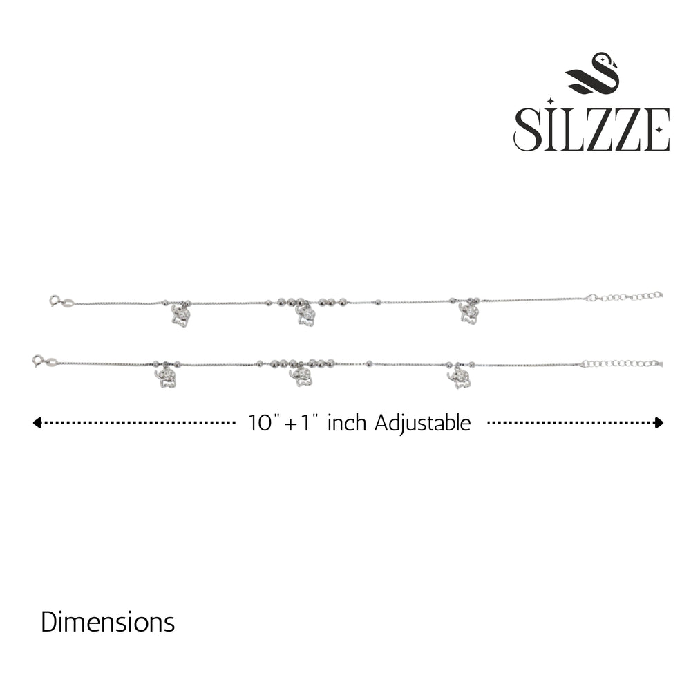 The piece is accented by three whimsical elephant charms, each finely detailed and set with brilliant micro-pave cubic zirconia (CZ) stones for an eye-catching sparkle. Elephants are cherished symbols of good fortune, wisdom, and protection, making this accessory a thoughtful gift.The intricate details of the sparkling elephant charms will gracefully catch the sun, making this a perfect statement piece for showing off your footwear or wearing barefoot.