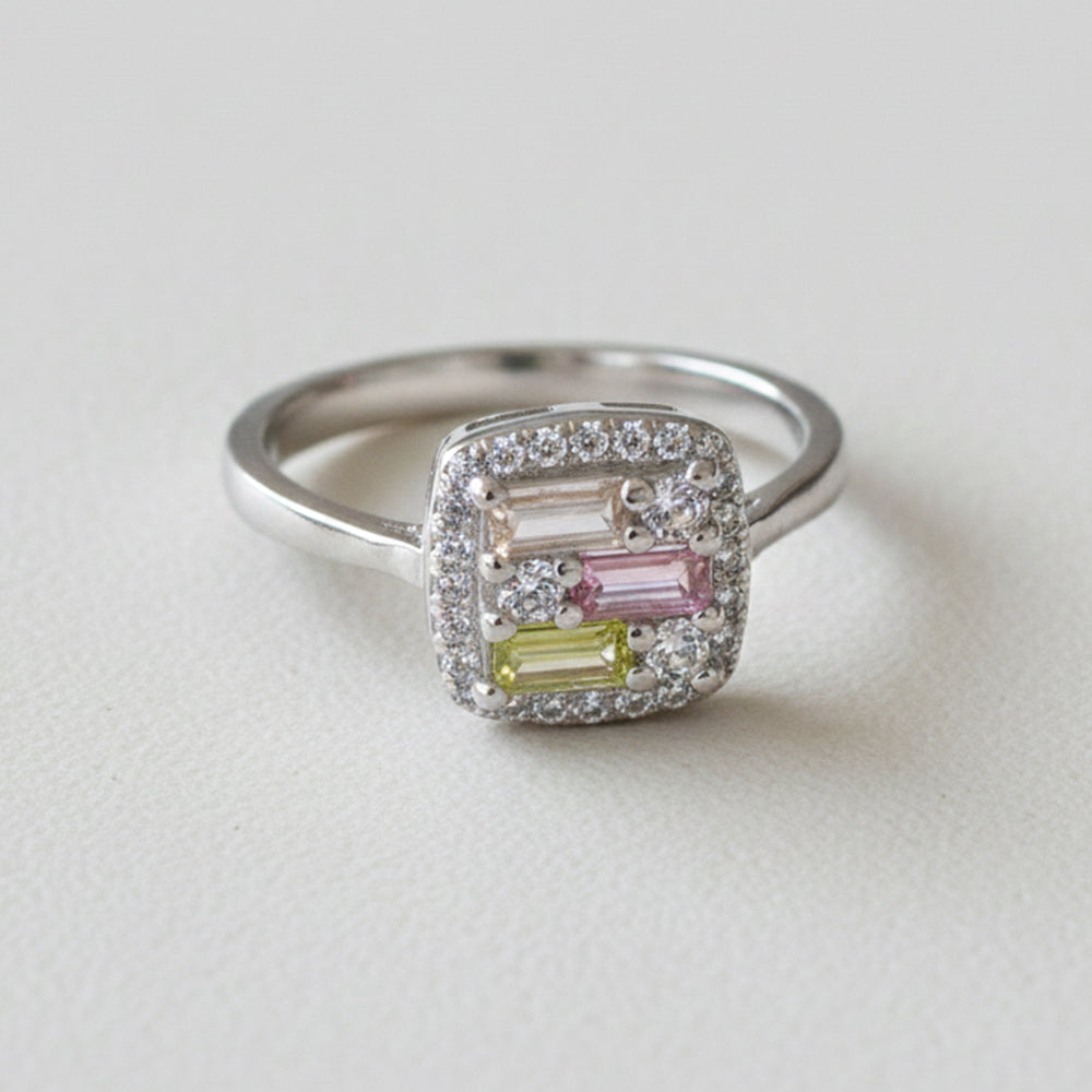 Silver Multi Colour Baguette Ring For Her