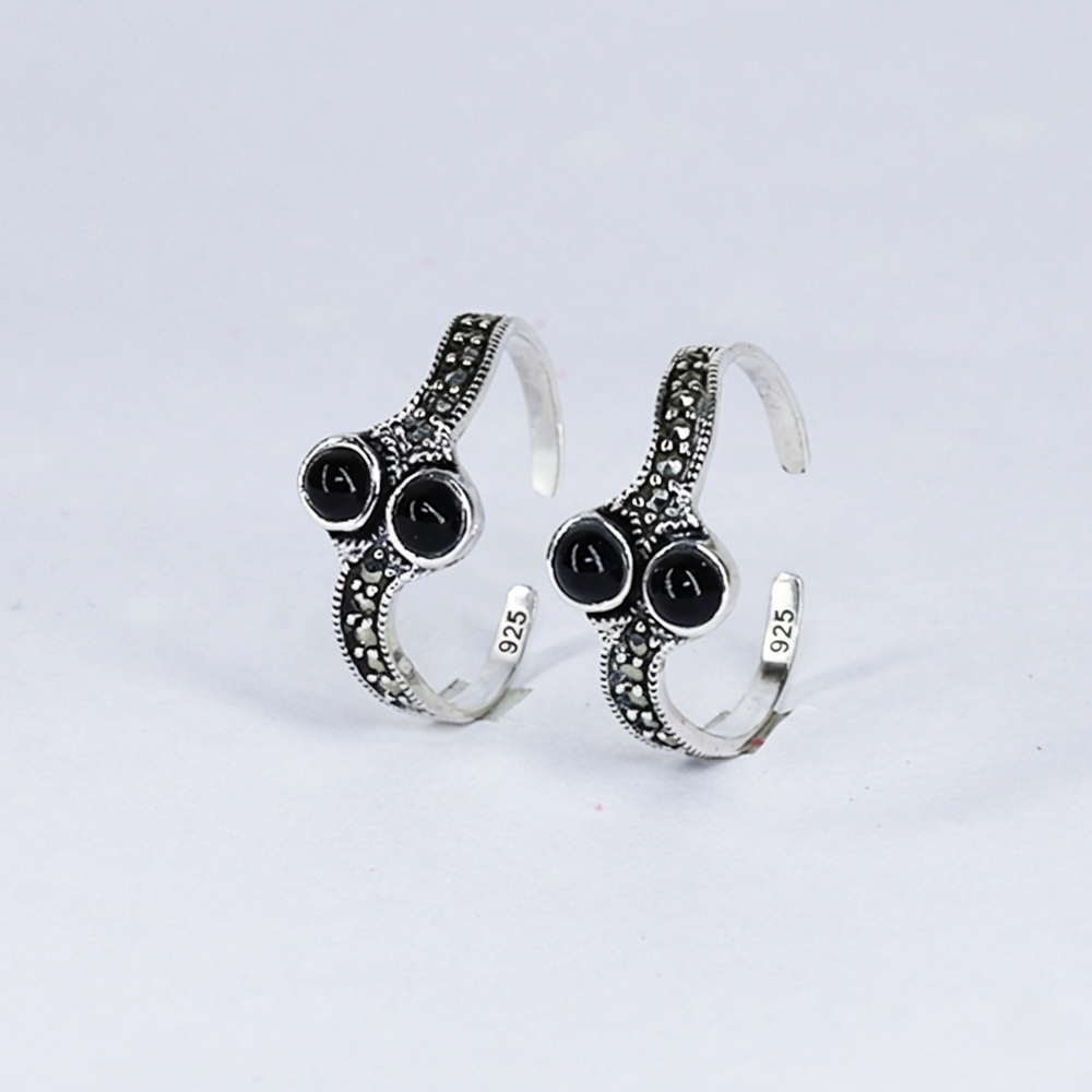 A sophisticated pair of sterling silver toe rings featuring a sleek, symmetrical design. The open-cuff style is easily adjustable, offering a comfortable fit. Perfect for daily wear