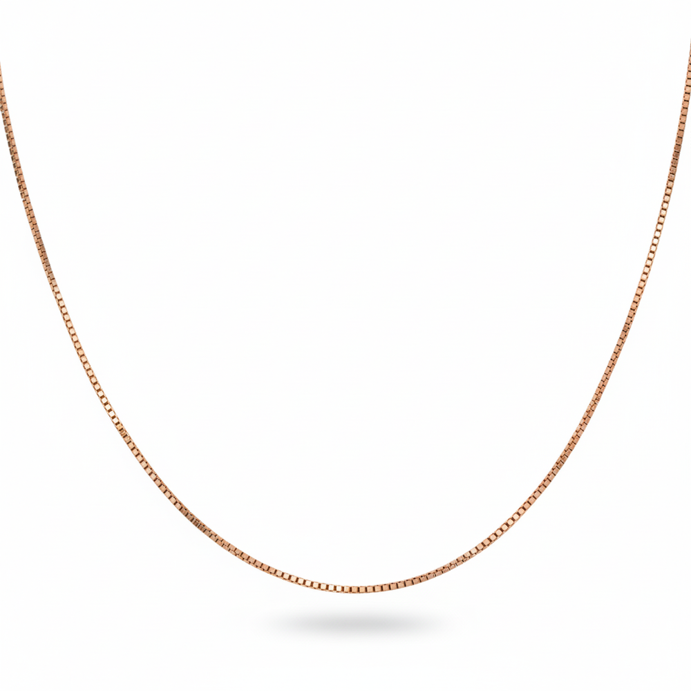 This elegant, rose gold polished necklace features a sleek Box Chain design crafted from genuine 925 Sterling Silver. Its smooth, interlocking square links offer a subtle yet sophisticated shine, making it an essential piece for everyday luxury. Draping beautifully along the collarbone, this chain catches the light with a delicate rose gold shimmer, instantly elevating any outfit. Its clean, geometric design offers a modern, versatile look that can be worn alone for an understated effect or layered effortlessly with other necklaces.