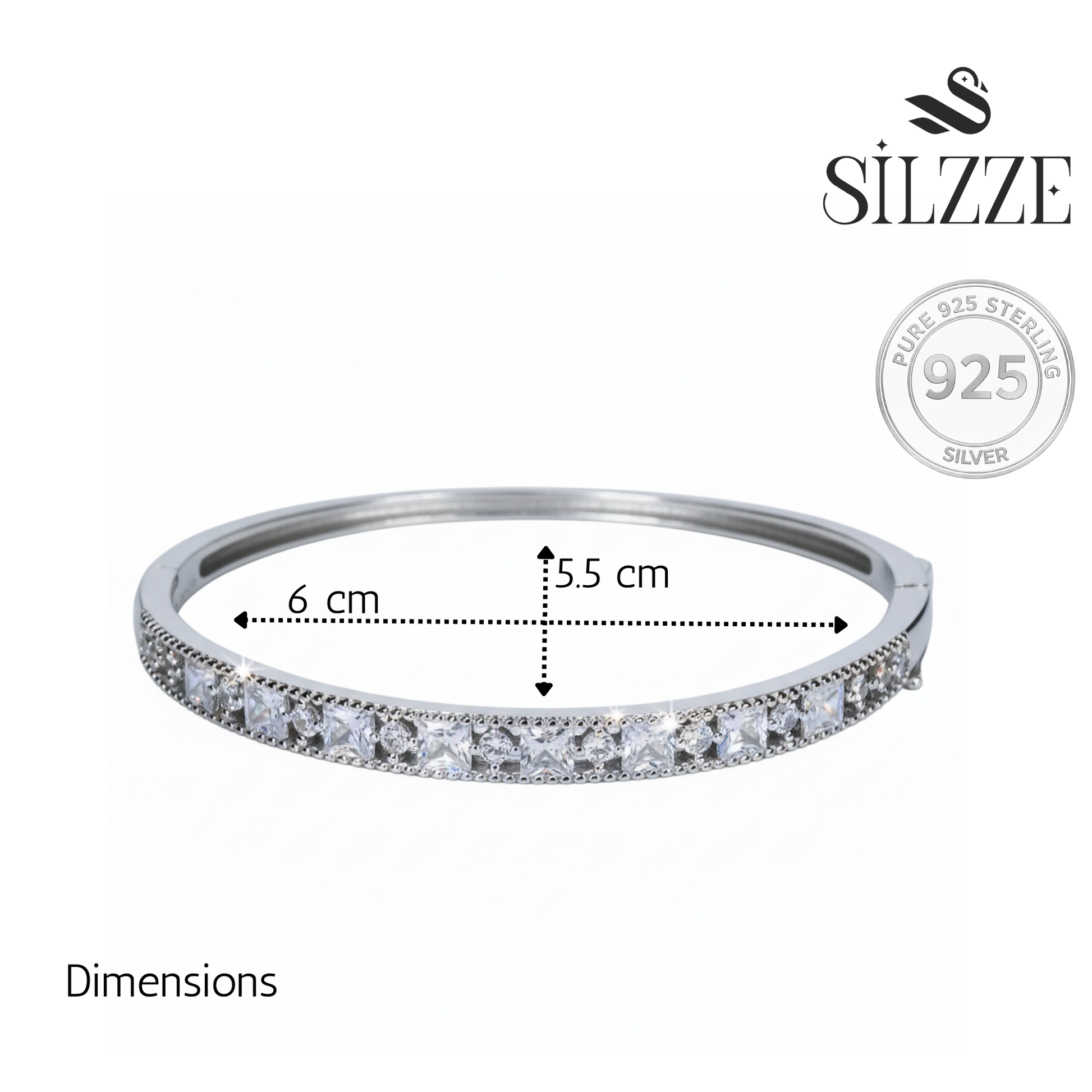Achieve classic sophistication with this stunning, full-circle hinged bracelet. Unlike traditional chain-style tennis bracelets, this piece offers a rigid, substantial feel, providing superior durability and a sleek fit. The surface is completely enveloped by a continuous row of brilliant-cut stones. Crafted in 925 Sterling Silver, this bracelet offers exceptional quality and a radiant, lasting finish that mirrors the look of fine white gold. This piece is the ultimate symbol of enduring style and luxury, making it a perfect heirloom-quality gift for any significant celebration.