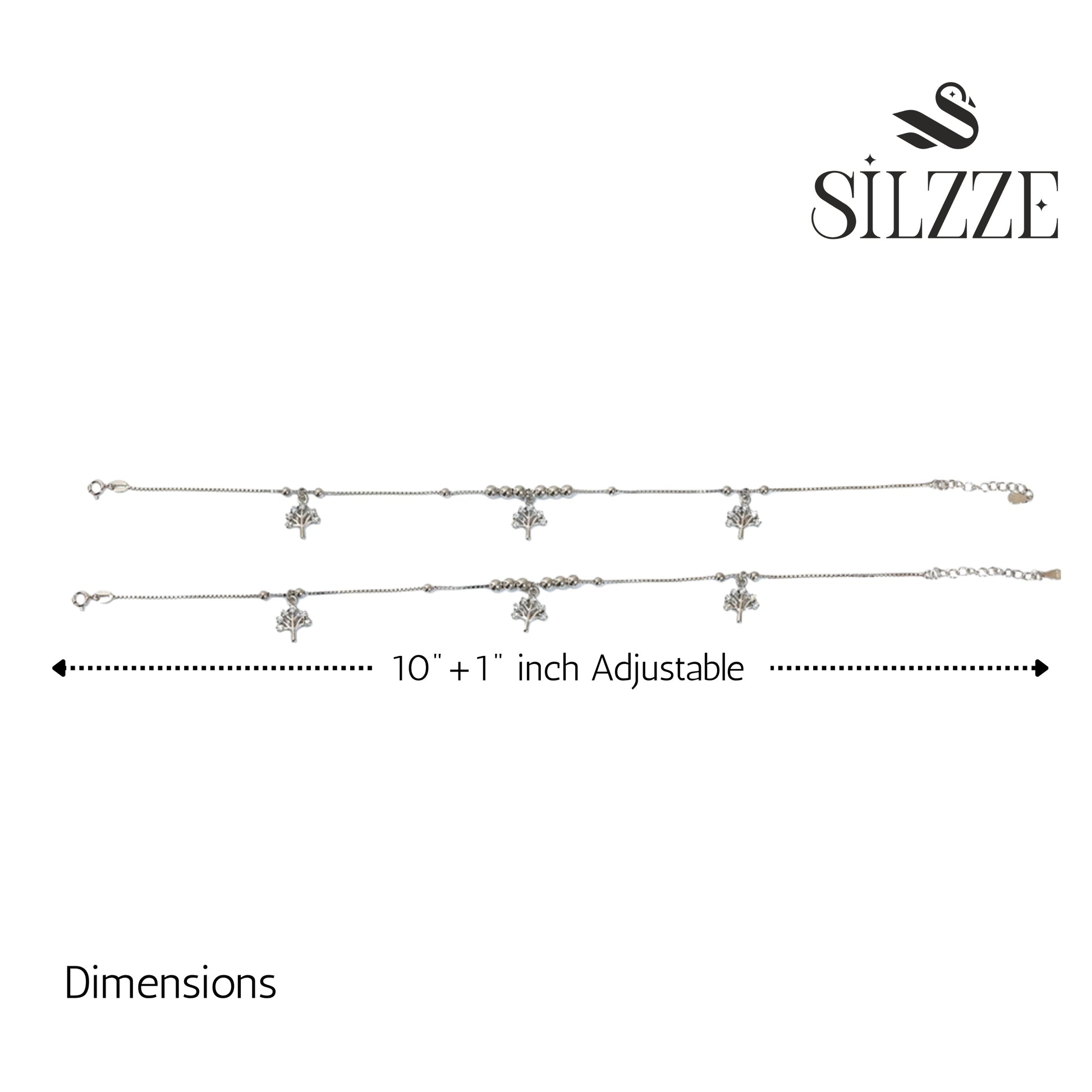 Crafted from genuine 925 Sterling Silver, this anklet showcases symbolic charm and subtle shimmer. The design gracefully mixes a box chain with a section of polished silver beads for visual texture. It is highlighted by three beautifully detailed Tree of Life charms, each accented with brilliant, micro-set cubic zirconia (CZ) stones.The Tree of Life represents family, roots, and eternal connection, making this piece a perfect gift. It secures with an adjustable lock for a customized, comfortable fit.