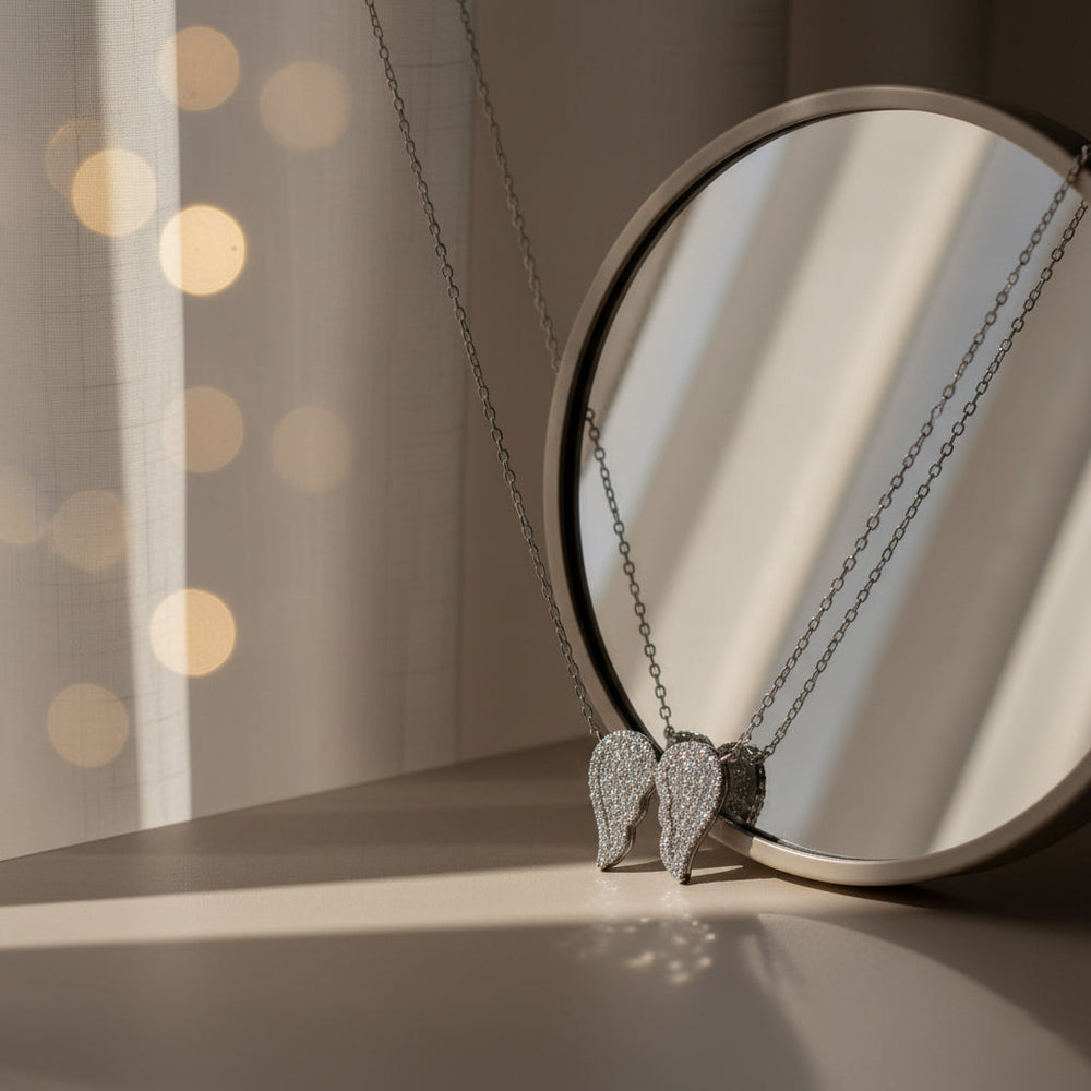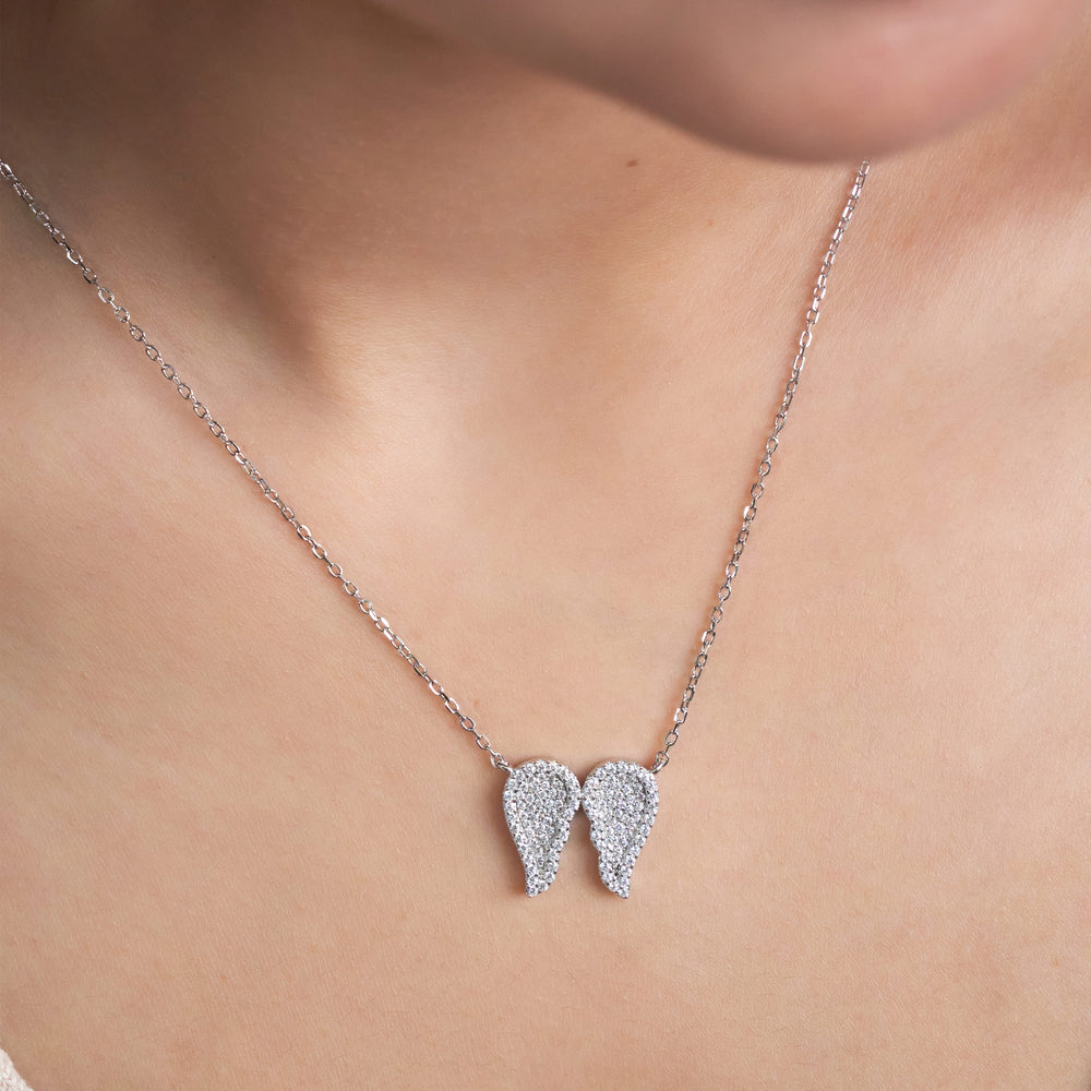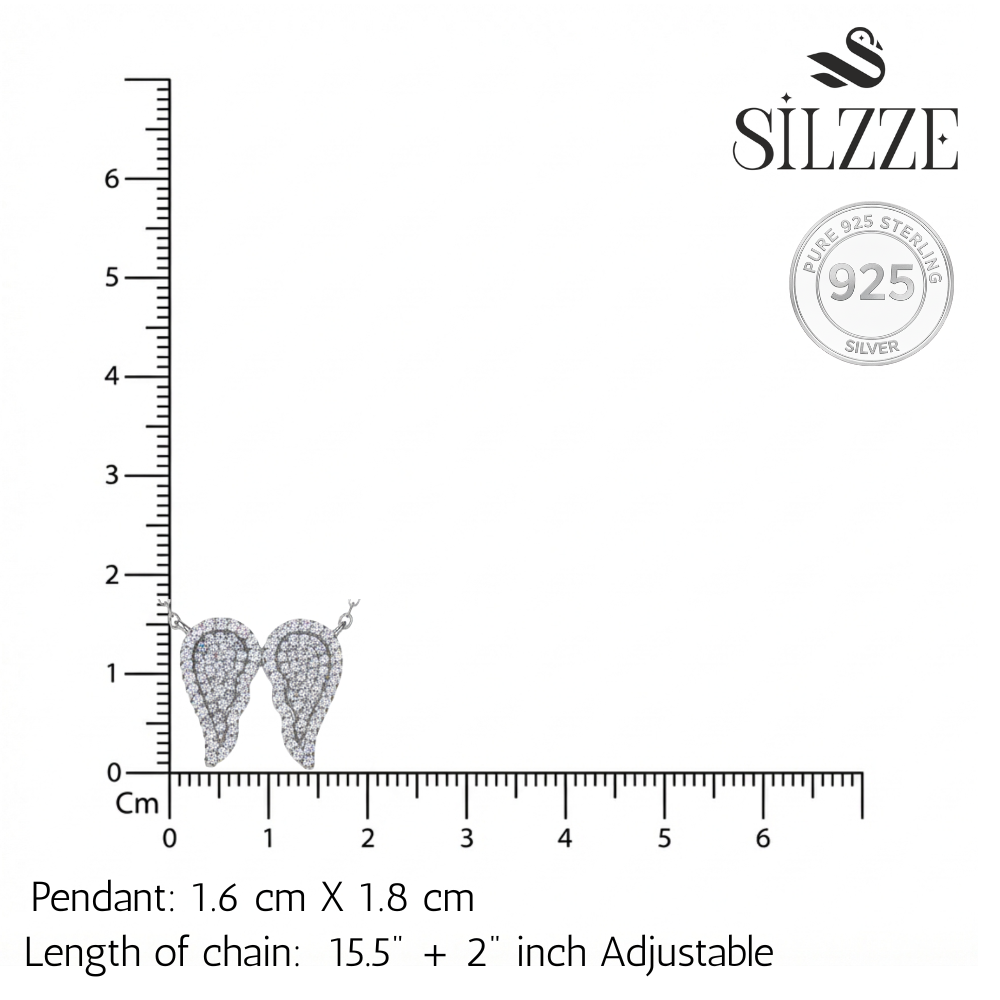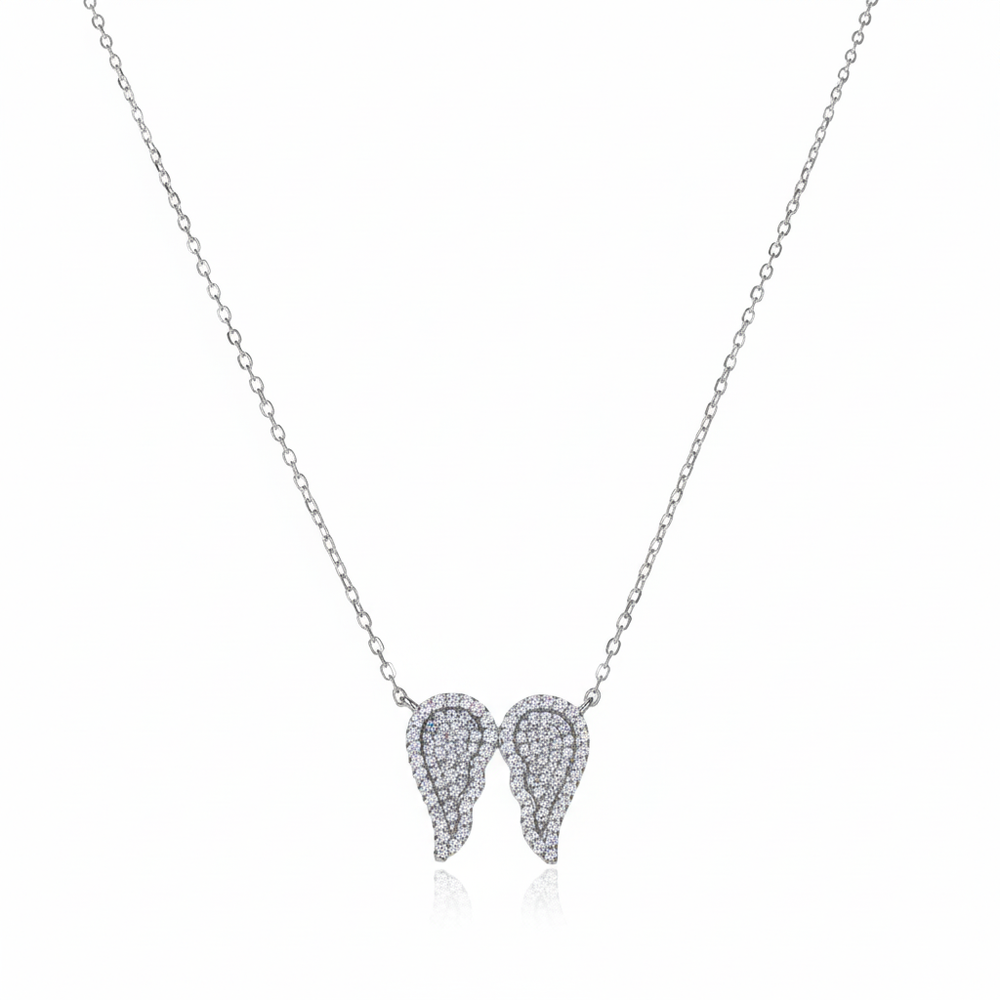 This ethereal necklace features a symbolic Angel Wings pendant, intricately set with brilliant pave (CZ) stones on a base of genuine 925 Sterling Silver. Suspended from a delicate oval-link chain, this piece is a beautiful symbol of hope and protection. Worn close to the heart, this lightweight necklace adds a subtle yet constant sparkle, perfectly complementing an open neckline or resting beautifully over a sweater. It serves as a gentle reminder of guidance and guardianship for the wearer, and add a stylish Genz look for anyone wearing it looking classic and trendy.