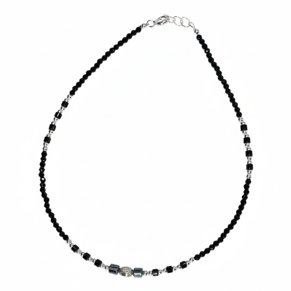 Each anklet is meticulously crafted with a continuous line of delicate black beads, interspersed with tiny, bright sterling silver spacers for maximum flexibility and sparkle. The black beads are the signature element, symbolizing the absorption of negative forces. The entire piece, including the durable clasp and extender chain, is made from certified 925 sterling silver, ensuring it is hypoallergenic, gentle on the skin, and built to last.
