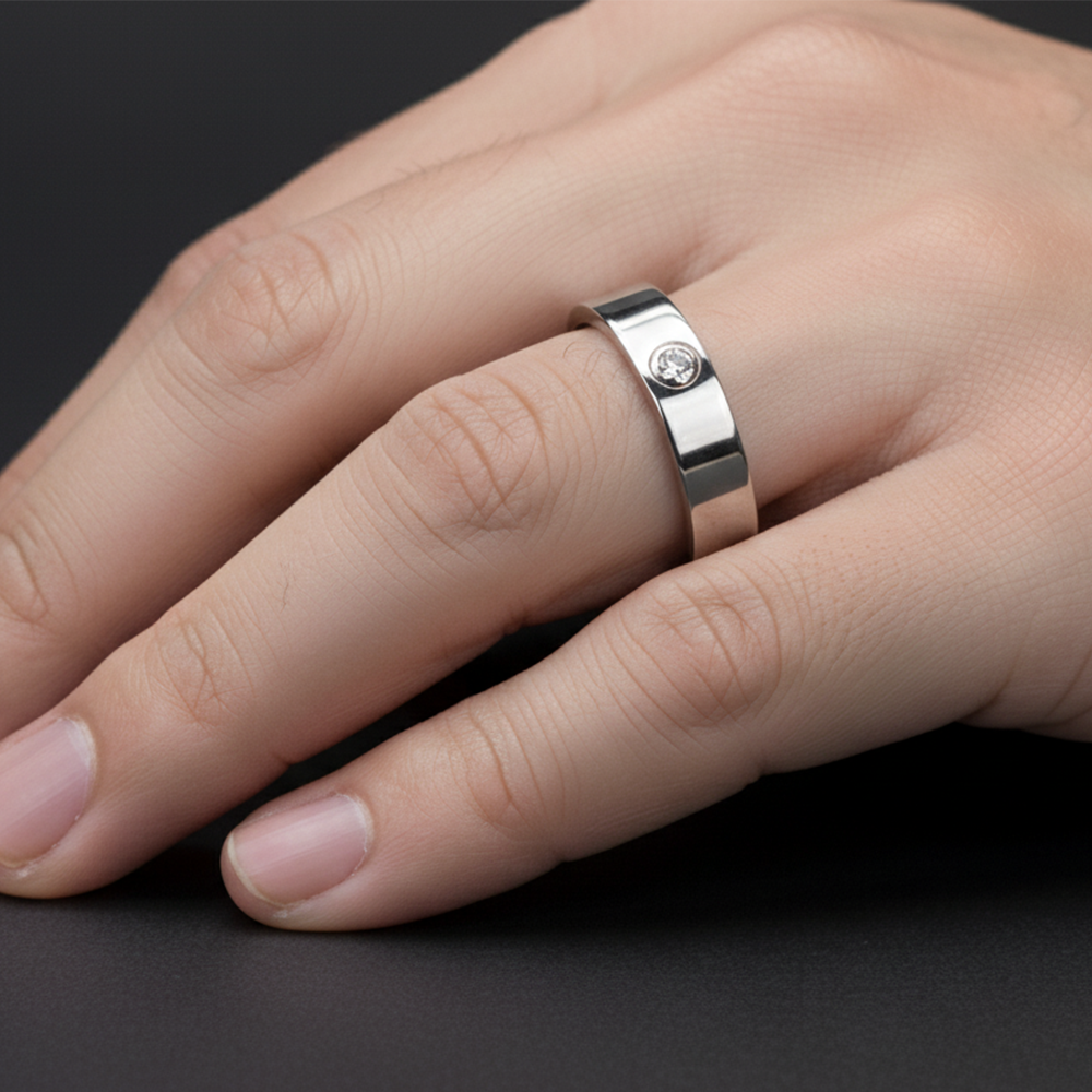 Crafted from solid 925 sterling silver, the ring offers a durable, hypoallergenic, and brightly polished finish. It serves as an exceptional choice for a subtle wedding band, a stylish commitment ring, or a sophisticated everyday accessory for the modern man or woman.